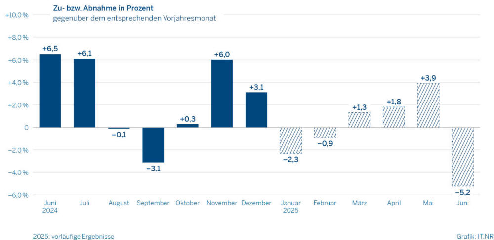 Nach vorläufigen Zahlen sank im Juni 2025 die