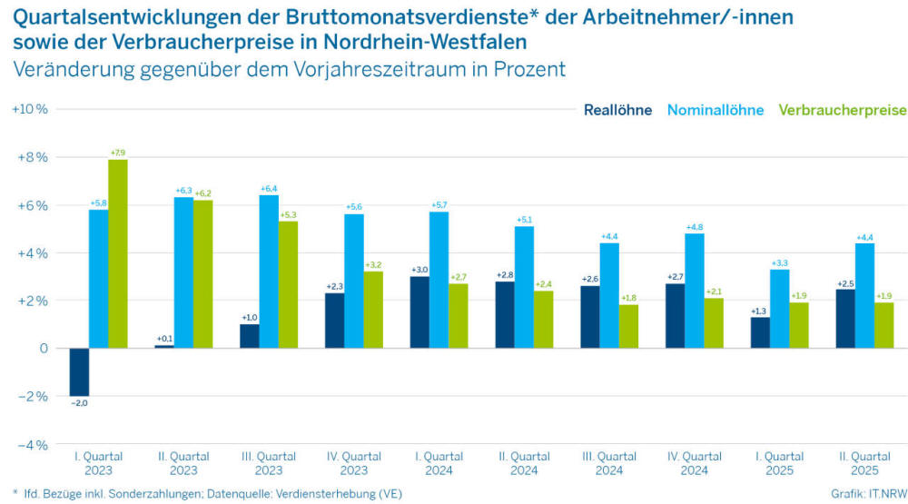 * Reallöhne stiegen im zweiten Quartal 2025 um