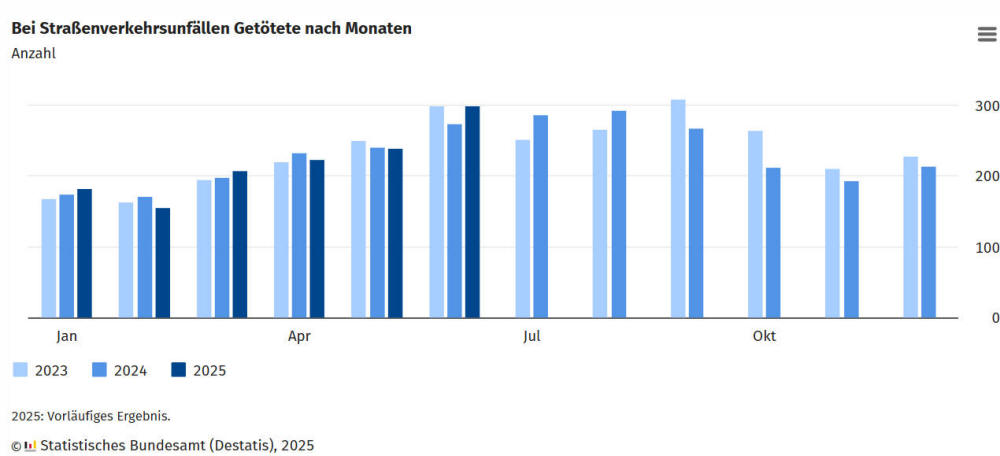 Zahl der Verkehrstoten im 1. Halbjahr 2025