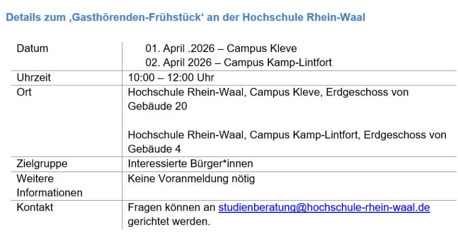 Organisation an der HSRW, wirft in zwei Veranstaltungen